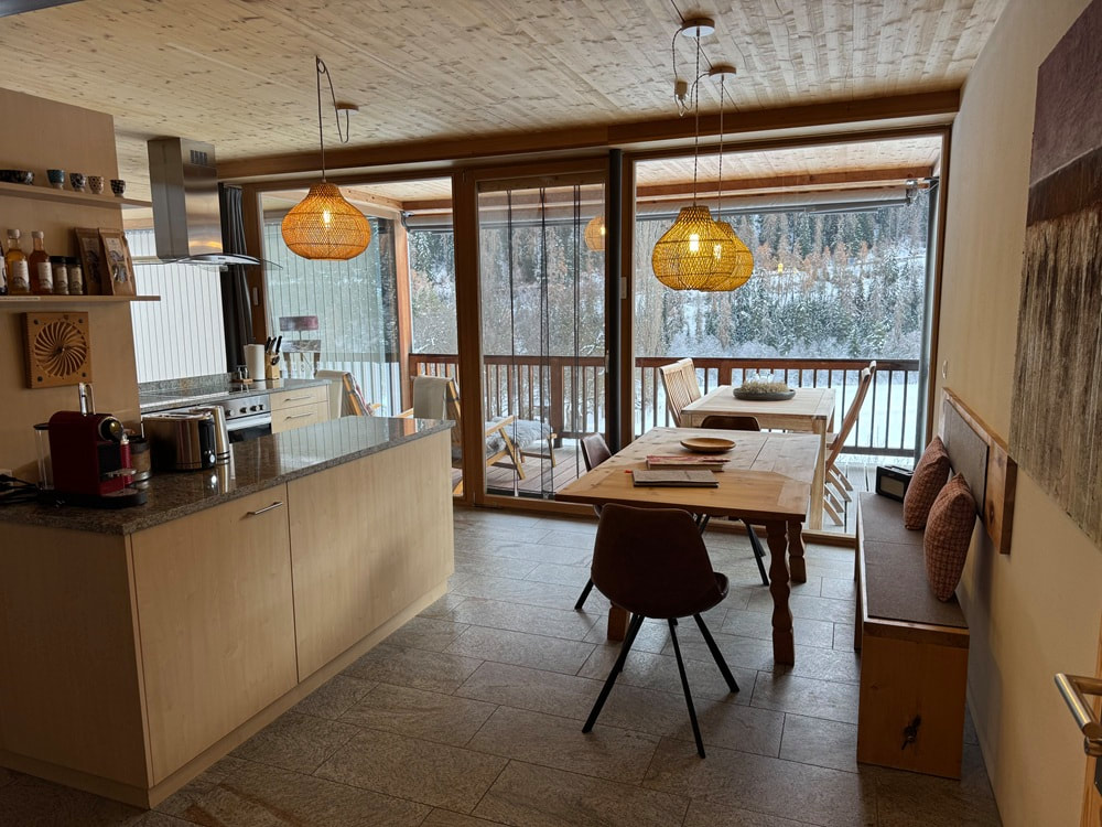 Die Wohnung in der chasa portanova bietet ausreichend Platz und Rückzugsmöglichkeiten für 2 bis 4 Personen. Die Wohnung verfügt über ein ultraschnelles Breitband-Internet (LAN/WLAN) über Glasfaser von miaEngiadina, TV, eine grosszügige offene Küche, zwei Schlafzimmer mit Arvenholz-Betten und Schränke, Möbel wie -lampen sowie ausgewählte Bildkunst von der Manufaktur Fritschi. Neu haben wir für unsere Feriengäste der chasa portanova eine eigene 11kW Ladestation von Zaptec für E-Autos.
